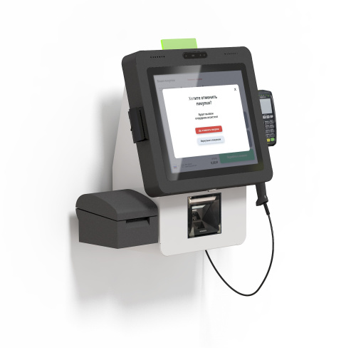 Касса самообслуживания «POScenter SCO-K170 Light_V2» — разработана для экспресс покупателей с небольшим количеством покупок, с креплением на стену или прилавок и минималистичным дизайном.